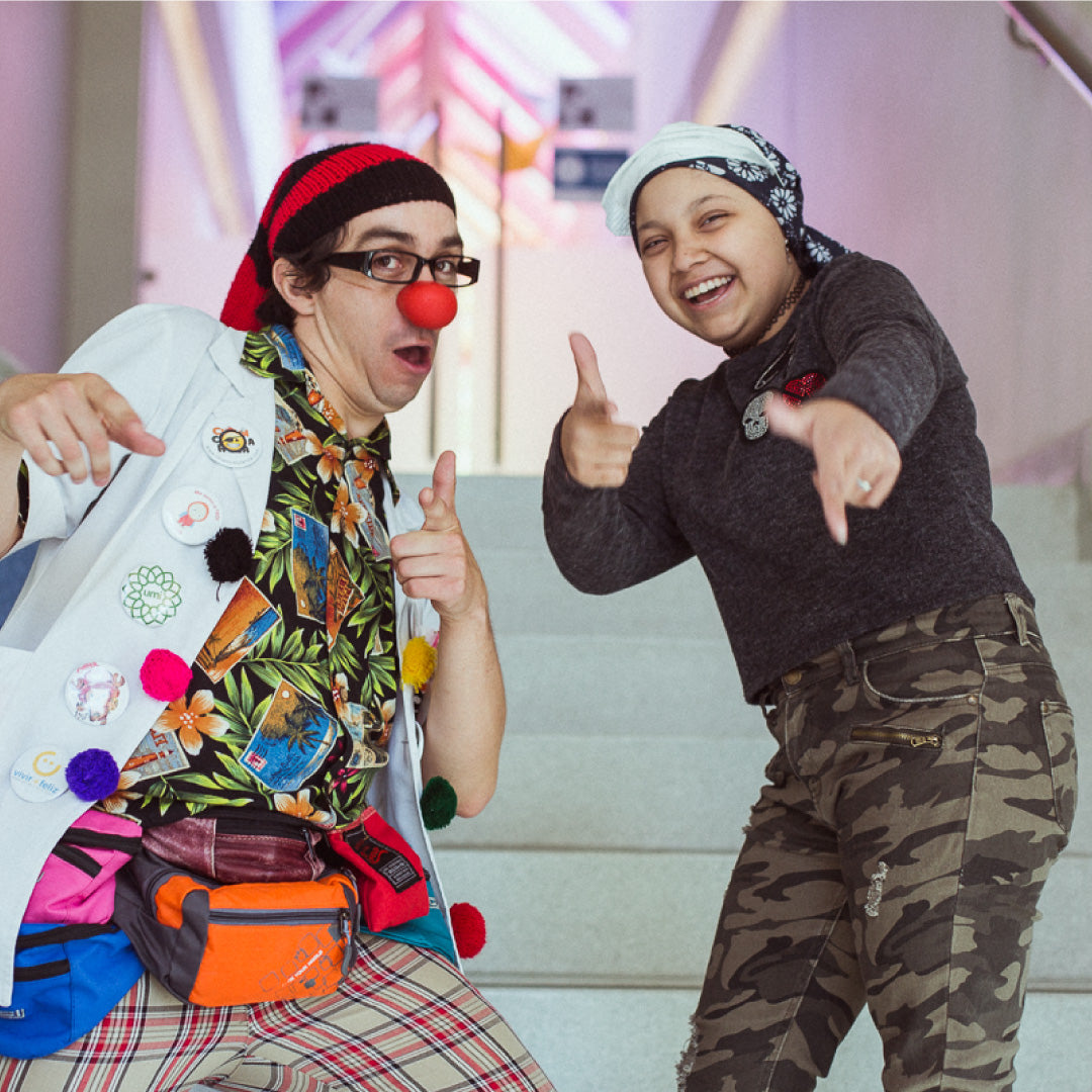 Ellos se encargan de hacer terapias de risa y juegos a los...