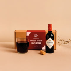 - Botellín de vino tinto 375 ml (variedades proporcionadas y certificadas por Hello Wine Chile)