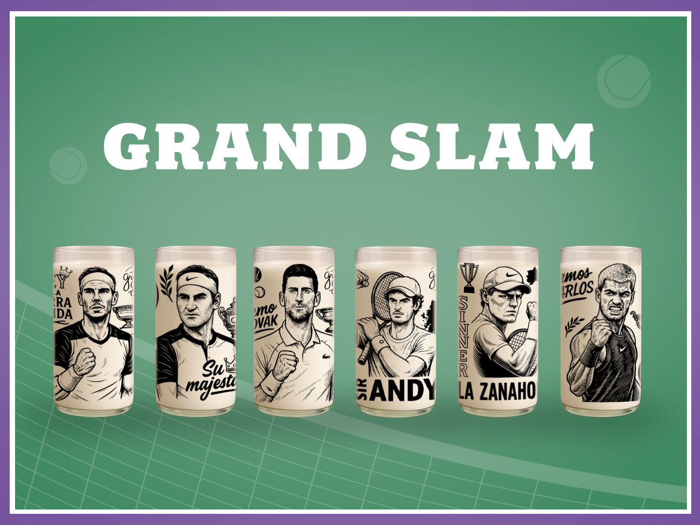 ¿Federer o Nadal? ¿Sinner o Alcaraz? ¡Ya no tienes que elegir! Llévate a casa las leyendas más grandes del tenis en una colección única de vasos sustentables.