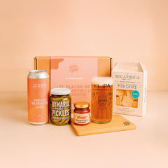 ¡Celebre el Éxito con un Toque Gourmet! Nuestro kit premium es el regalo perfecto para empresas que buscan impresionar. Incluye cerveza, una mini tabla y cubiertos de picoteo de madera, pepinos dulces, Pita Chips y una deliciosa Mermelada de Pimentón. Además, el vaso Green Glass personalizable agrega un toque único a esta experiencia. Brinde por los logros y celebre con un festín de sabores inolvidables!