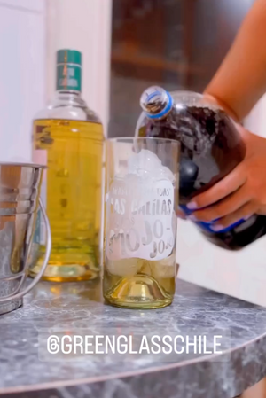 Una vez que las botellas llegan a nosotros, son cortadas para ser convertidas en vasos.